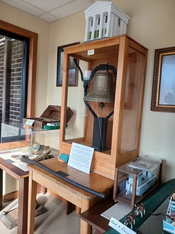 The Whitewater Canal brought commerce to the area. It allowed goods and people to move in and out. The museum has a display that includes the bell from a canal boat, the surveying equipment used to build the canal. and models of the canal boats. After the canal company failed, water from the canal was used in manufacturing. The railroad replaced the canal, and the tracks are built on the towpath that was used by the mules.